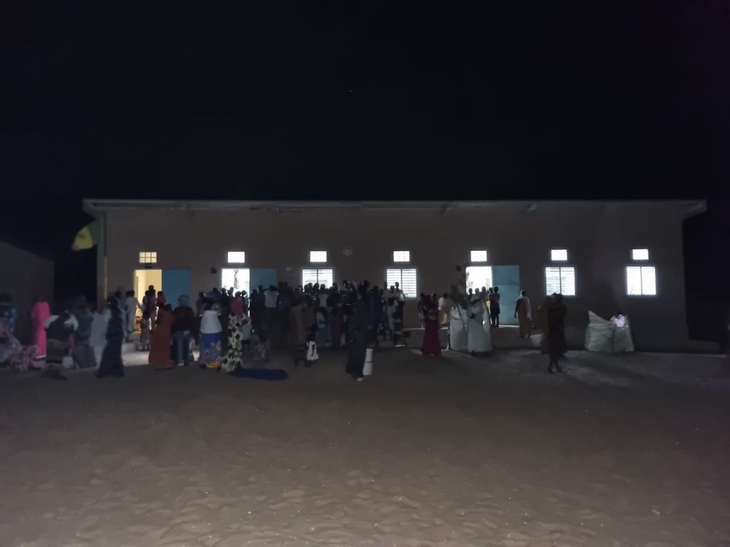 Jour 3 : Les travaux se sont poursuivis avec l’installation du kit solaire doté de 3 panneaux photovoltaïques sur la toiture de l’école. De plus, un kit photovoltaïque au sol (Triangle Autoconso) a été installé pour alimenter la case de santé du village. Après finalisation des câblages et l’installation des LED dans les différentes pièces des deux établissements, tout le village s’est réuni pour l’allumage des lumières. Un moment riche en émotion pour tous les participants.