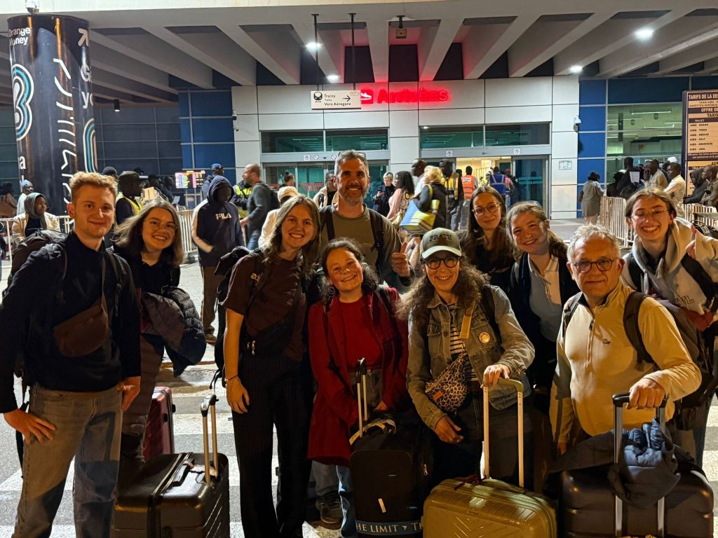 Arrivée à l’aéroport de Dakar de la mission Sindia Soleil avec les 7 étudiants de l’INSA Centre-Val de Loire, leurs 2 encadrants et Bruno, bénévole et chef de chantier d’Horizons Sahel – 07/02/2025