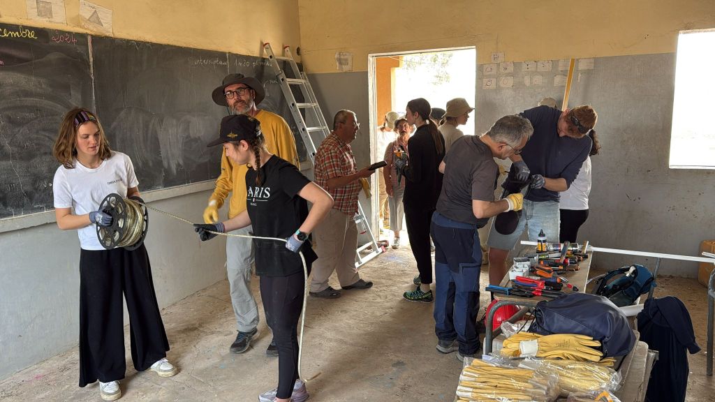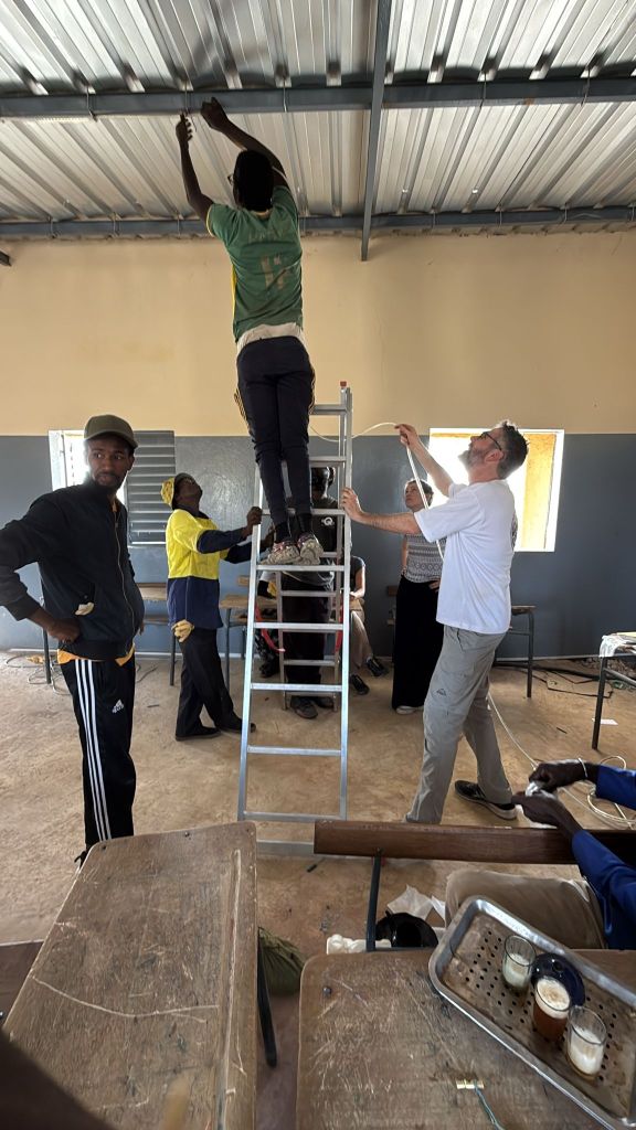 Il y eut la préparation et l’installation électrique des salles de classes, la réalisation de tranchées avant l’arrivée du conteneur qui transportait les panneaux. Puis, une fois celui-ci arrivé, en milieu de semaine, il a fallu le décharger, installer les panneaux tant attendus, établir les vérifications d’usage et adapter l’installation.