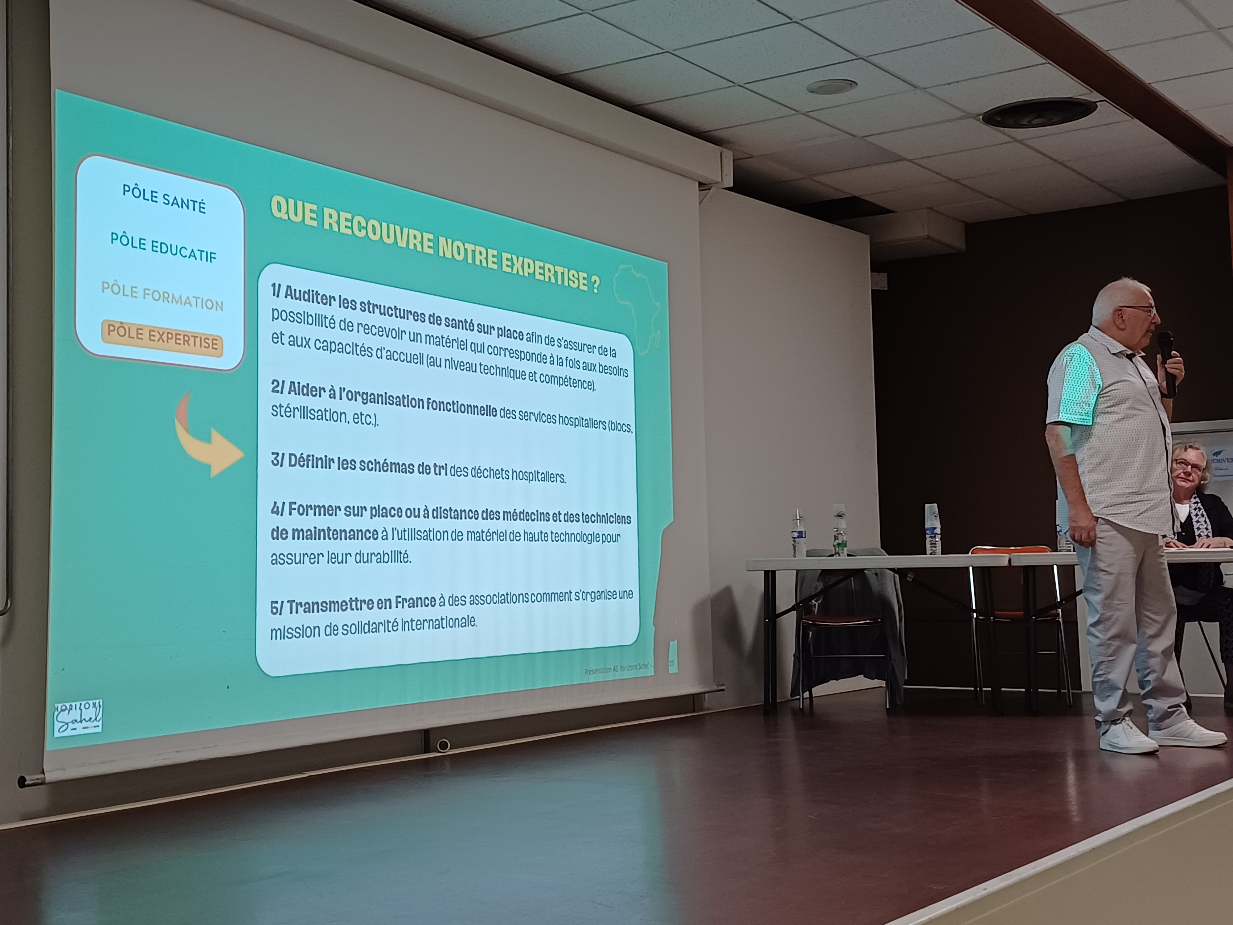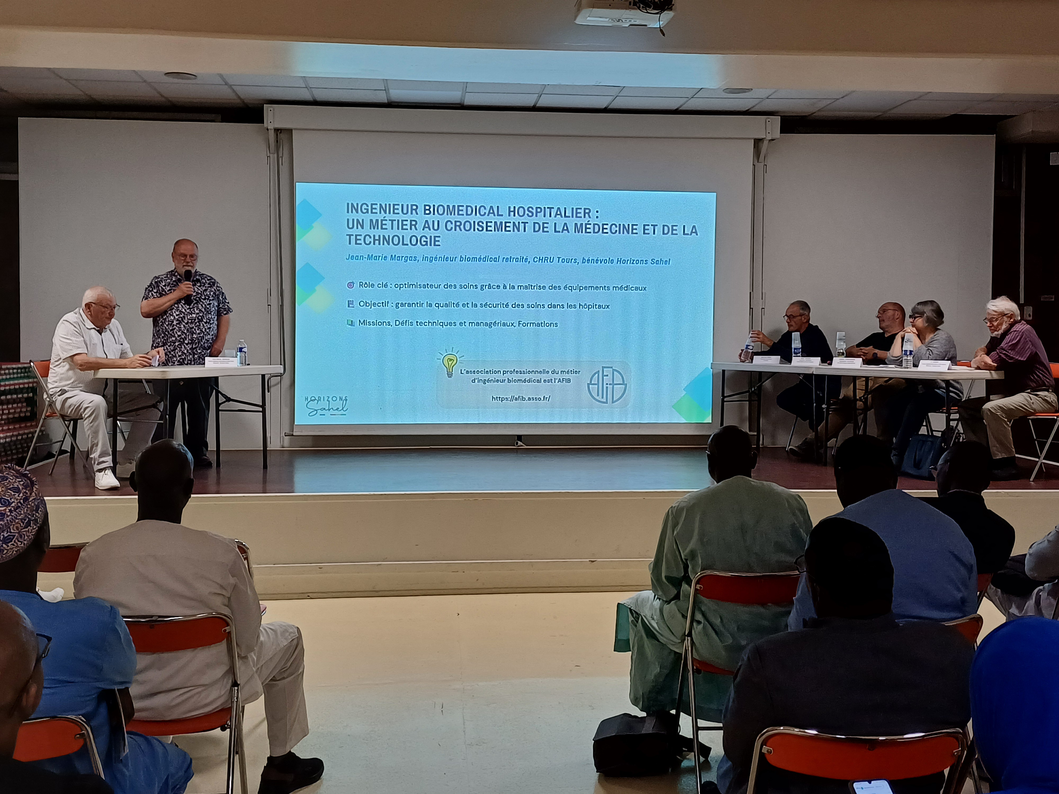 Merci à l’AAMB (Association des Agents de Maintenance Biomédicale) et à nos deux ingénieurs hospitaliers retraités, bénévoles d’Horizons Sahel, Jean-Marie et Jo pour leur active participation.