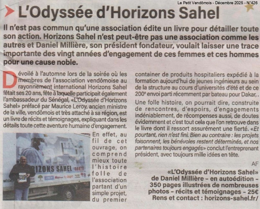 Nouveau site pour Horizons Sahel, Le Petit Vendômois, décembre 2023.